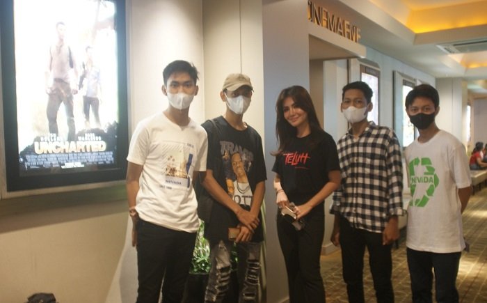 Awak media berkesempatan nonton bareng dengan pemain film yang dalam film itu memerankan Yulia (Farahdiba Ferreira) yang  tayang perdana di Surabaya Kamis (20/1).